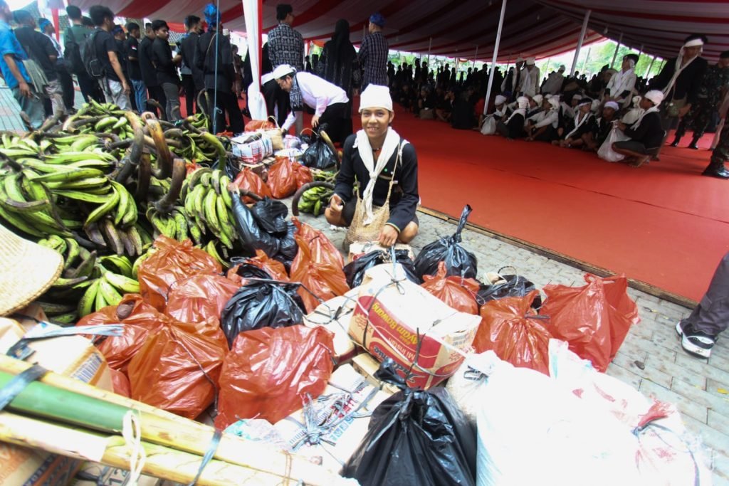 Ribuan warga Baduy turun ke kota dalam penyelenggaraan ritual Seba Baduy 2023. Mereka berkunjung ke Pendopo Bupati Lebak (Emak Gede) di Rangkasbitung untuk menyampaikan amanat dan hasil panen satu tahun. Dalam puncak acara Seba Urang Kanekes (urang Baduy) lanjut menuju Pendopo Gubernur (Bapa Gede) menyampaikan amanat dan menyerahkan hasil panen. Seba Baduy merupakan tradisi satu tahun sekali yang biasanya dilakukan saat pertengahan tahun setelah warga Baduy selesai menggelar ritual Kawalu atau bulan puasa dalam kalender adat Baduy. Seba Baduy kali ini di hadiri sebanyak 1.224 orang. Terlihat PJ. Gubernur Banten Al Muktabar menyambut kedatangan Warga Baduy di Pendopo Gubernur Banten Jalan KH. Samun Kota Serang. Sabtu (29/4/23). PotretBanten.com/Leoni.