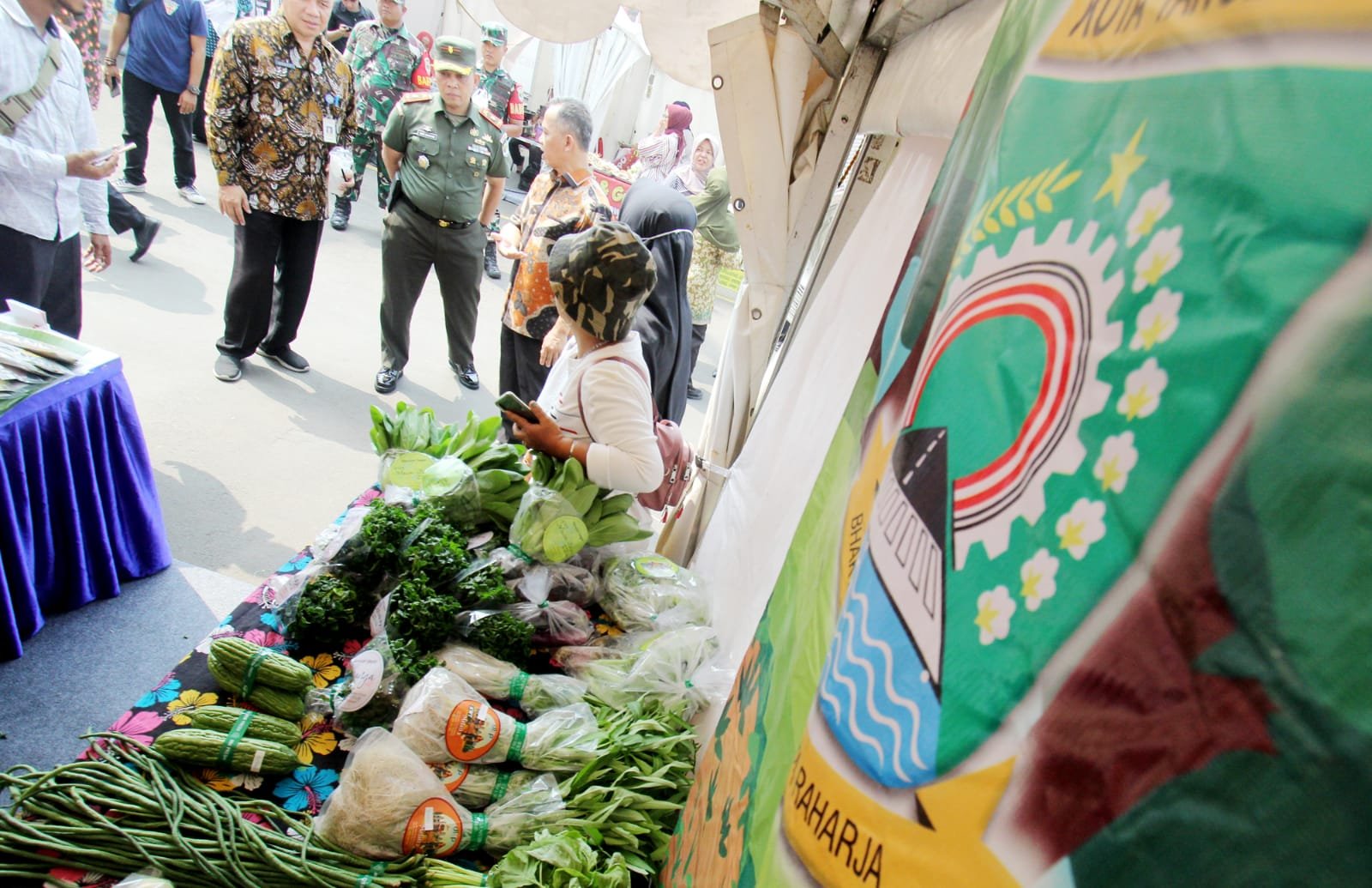Dinas Perindustrian Koperasi dan UMKM menggelar Bazar UMKM di halaman Plaza Robinson, Jalan. Daan Mogot Kota Tangerang. Acara yang digelar selama empat hari ini (25-28 Mei 2023) yang menyediakan produk-produk UMKM Lokal selain itu para pengunjung bisa memeriksakan kesehatan di stand yang disediakan oleh kecamatan Tangerang dan dimeriahkan juga oleh aksi panggung dari Band lokal yang ada di Kota Tangerang. Kamis (25/5/23).Potretbanten.com/Leoni.