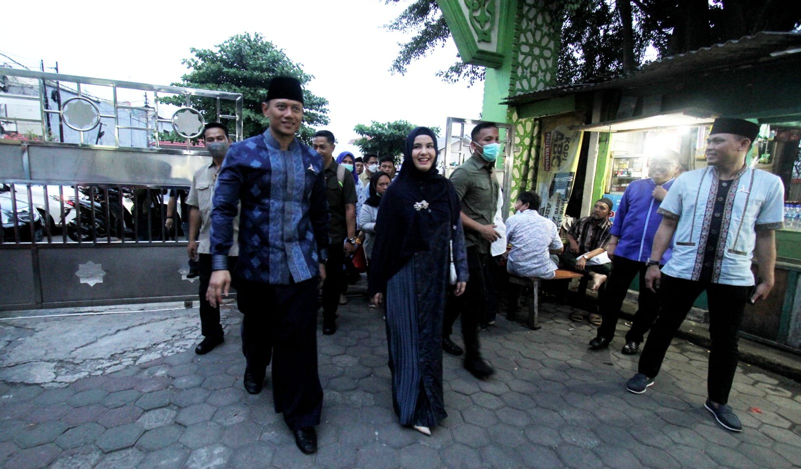 - AHY dan Istri memasuki Masjid Al-Ittihad Kota Tangerang