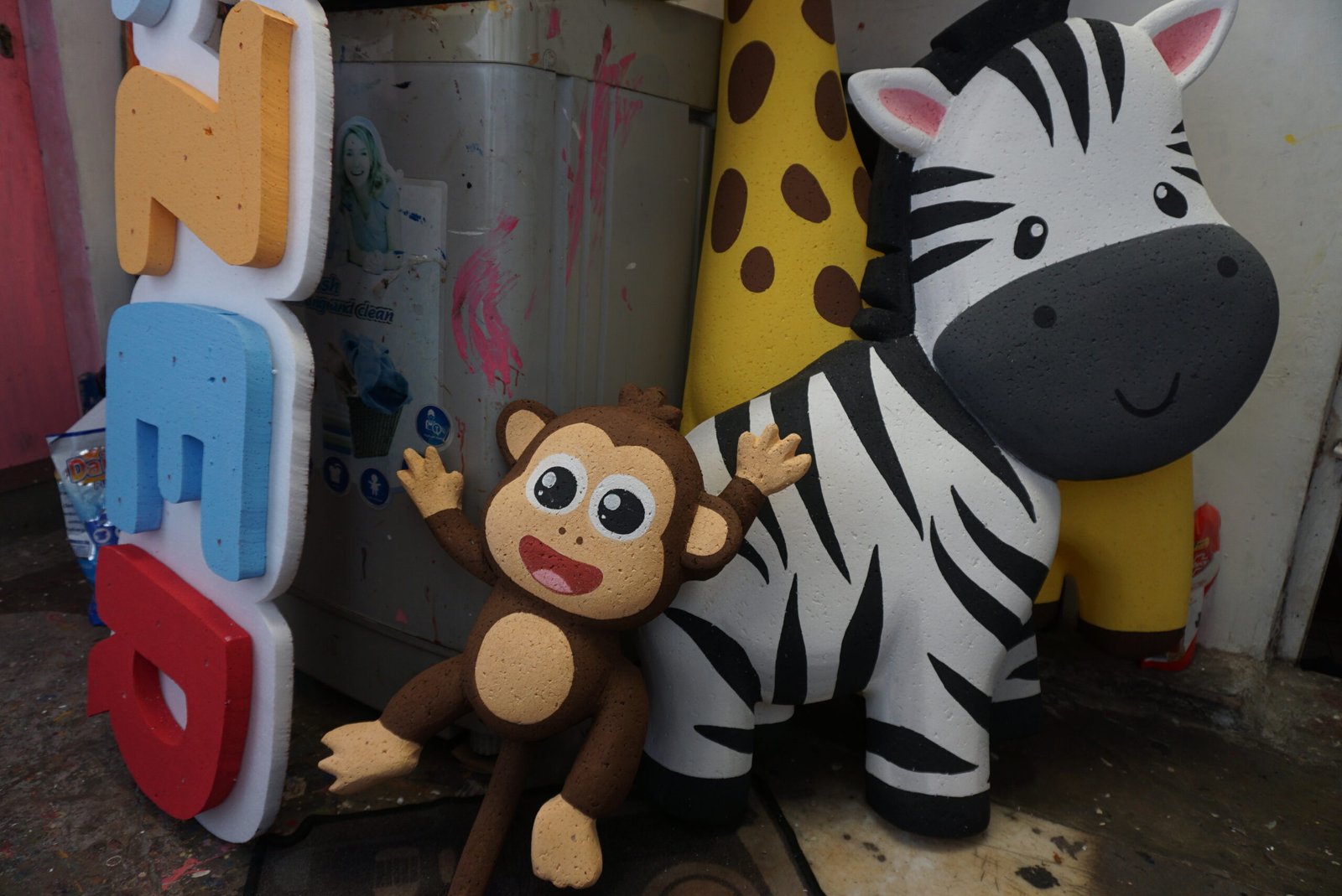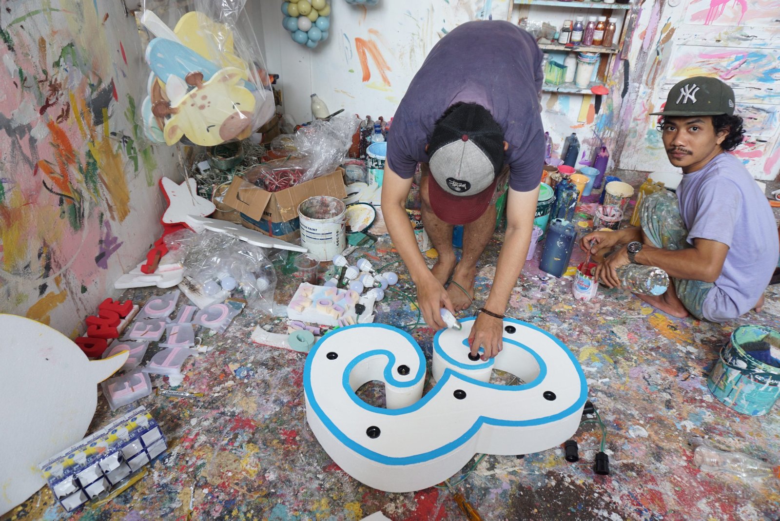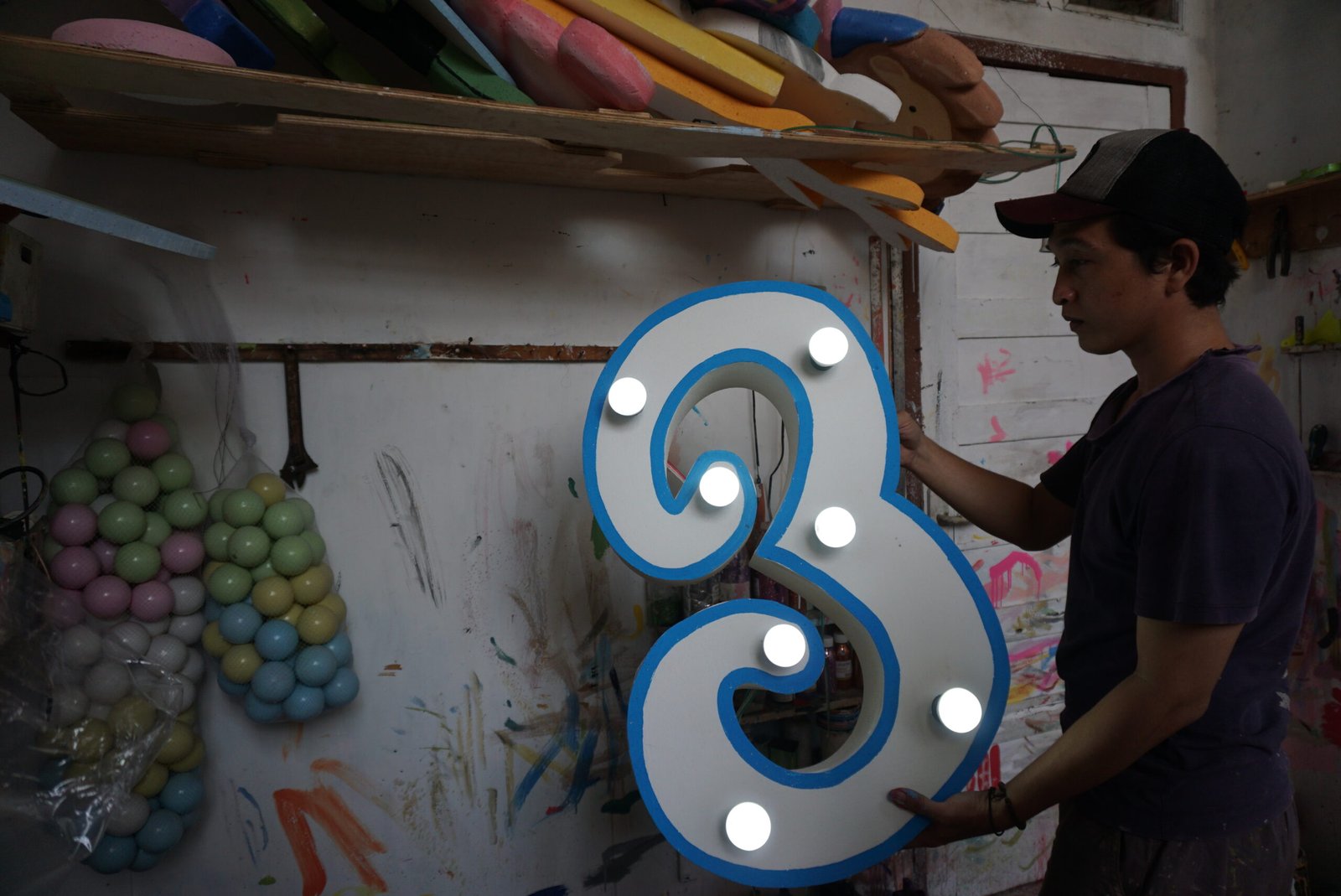 Dekorasi menjadi salah satu hal terpenting untuk menghiasi ruangan menjadi lebih cantik dan menarik dalam sebuah acara. Beragam jenis dekorasi pun bermunculan, salah satunya dekorasi styrofoam karya anak muda di Jalan Nyimas Melati No. 42, RT. 003/RW. 001, Kelurahan Karang Anyar, Kecamatan Neglasari, Kota Tangerang. Bisnis dekorasi ini dilirik usai pandemi Covid-19 berakhir. Koordinator Styrofoam Art, Fahmi Ulumuddin, mengungkapkan usaha dekorasi berbahan styrofoam ini dibuat bersama dengan teman-temannya yang sama-sama menyukai seni lukis, karyanya pun sudah tembus sampai luar negeri. Terlihat seorang pekerja sedang menyelesaikan pesanan nya, berupa ondel-ondel. Kamis (20/7/2023). PotretBanten/Leoni.