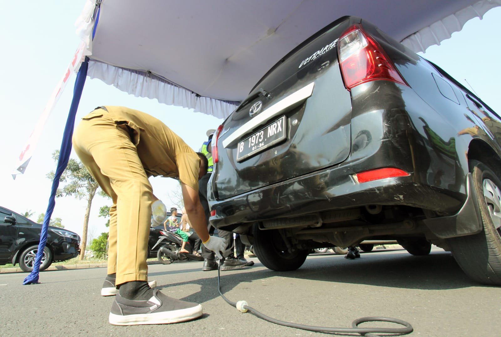 - petugas sedang mengecek kendaraan bermobil