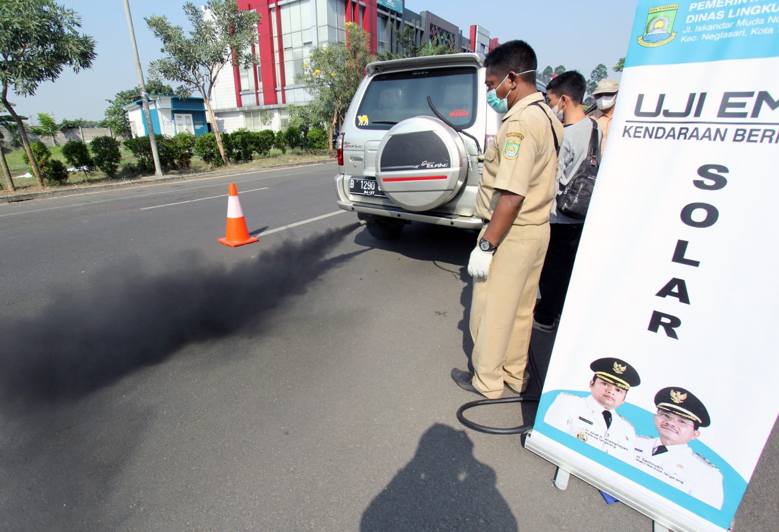 Kepala Dinas Lingkungan Hidup Kota Tangerang, Tihar Sopian mengatakan, proses uji emisi di jalur protokol akan diterapkan per hari ini yang akan diselenggarakan selama tiga hari dengan lokasi di tiga titik. Dari jam 08.00 hingga 15.00 WIB dengan target 700 kendaraan.