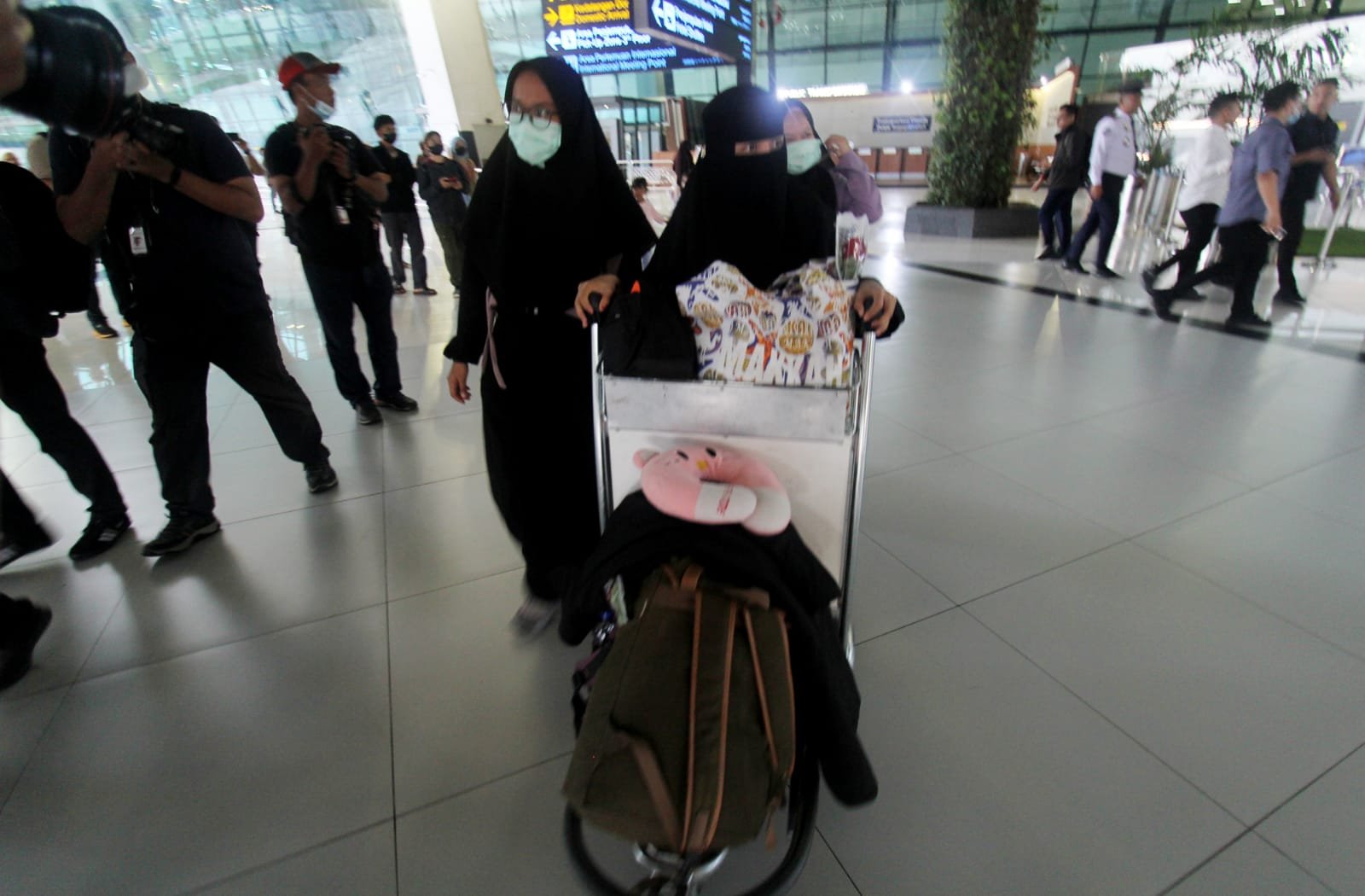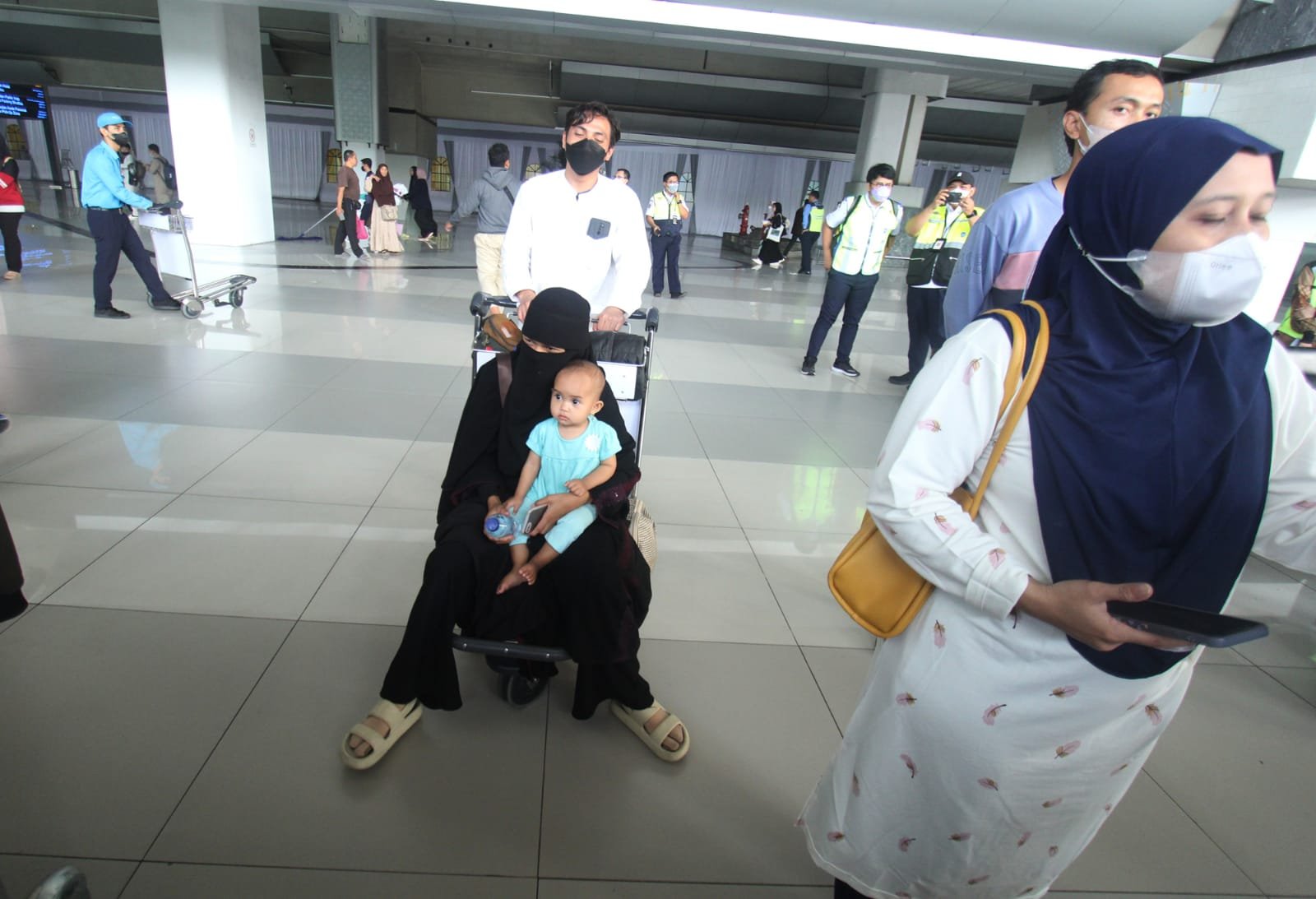 Kedatangan mereka disambut oleh Menteri Luar Negeri (Menlu) Retno Marsudi dan pejabat lainnya di Bandara Internasional Soekarno-Hatta, Tangerang. Para WNI datang pada pukul 05.46 WIB dengan menggunakan pesawat Garuda GA991.