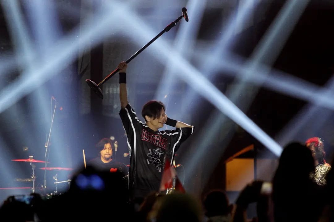 Konser grup Band GIGI memeriahkan malam puncak HUT ke 31 Kota Tangerang, di halaman Taman Elektrik, Kota Tangerang, Rabu (28/2/2024). Band GIGI sukses menghibur masyarakat dengan lagu-lagu andalannya. Pada malam puncak tersebut terlihat antusiasme masyarakat menikmati alunan lagu yang dibawa Arman Maulana, vokalis Band GIGI. Rabu (28/2/2024) Malam. PotretBanten.com/ Leoni.