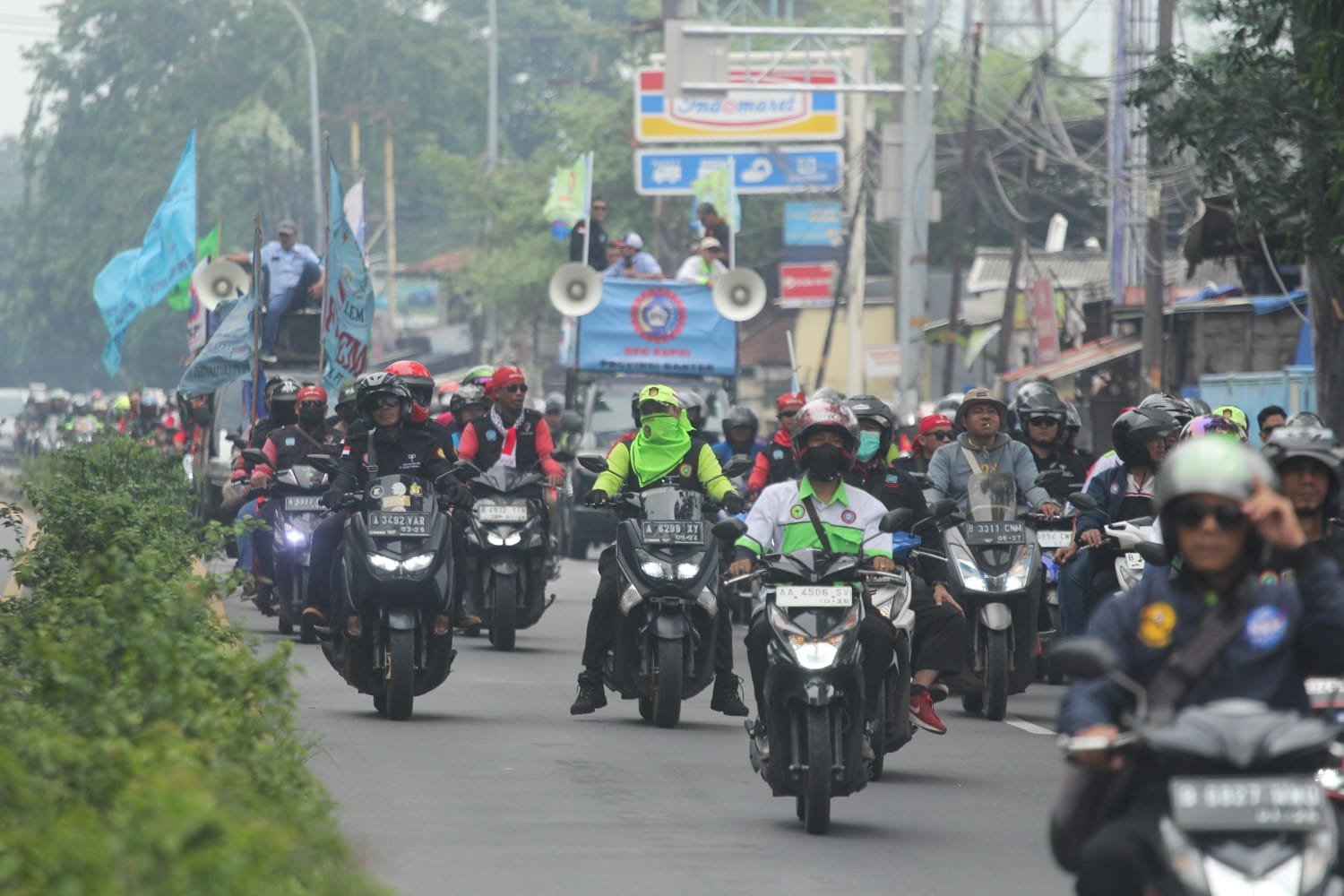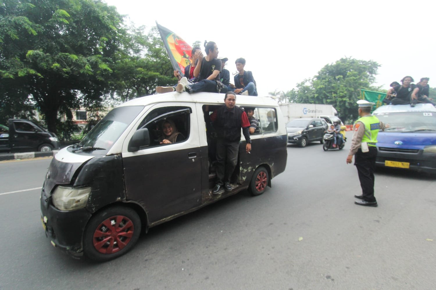 - Tanggal 1 Mei diperingati sebagai Hari Buruh Internasional. Ratusan Buruh berangkat menuju Jakarta guna menggelar aksi di Hari Buruh 2024 .Ratusan buruh yang tergabung dari beberapa serikat buruh Kota dan Kabupaten menuju Jakarta dengan menggunakan kendaraan roda dua dan empat melintas di jalan Daan Mogot Kebon Besar Kota Tangerang. Konvoi kendaraan buruh di kawal oleh pihak Kepolisian dari Polres Metro Tangerang Kota hingga perbatasan antara Jakarta Tangerang. Tampak terlihat aparat Kepolisian memberhentikan angkutan umum yang di tumpangi mahasiswa Unis Kota Tangerang guna memberi peringatan agar tidak naik di atas mobil. Rabu (1/5/24). PotretBanten.com/Leoni.