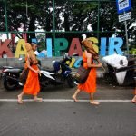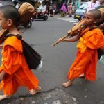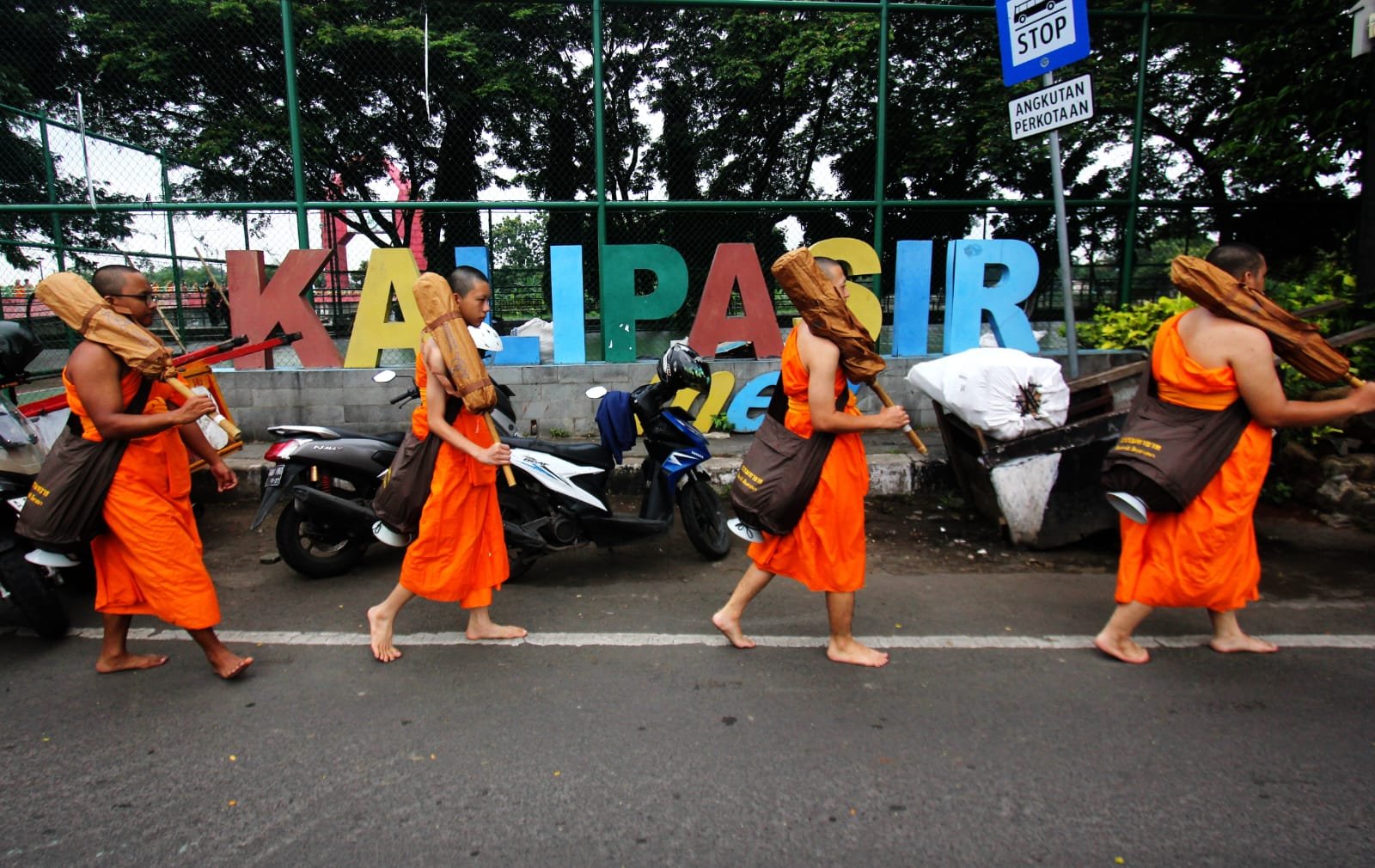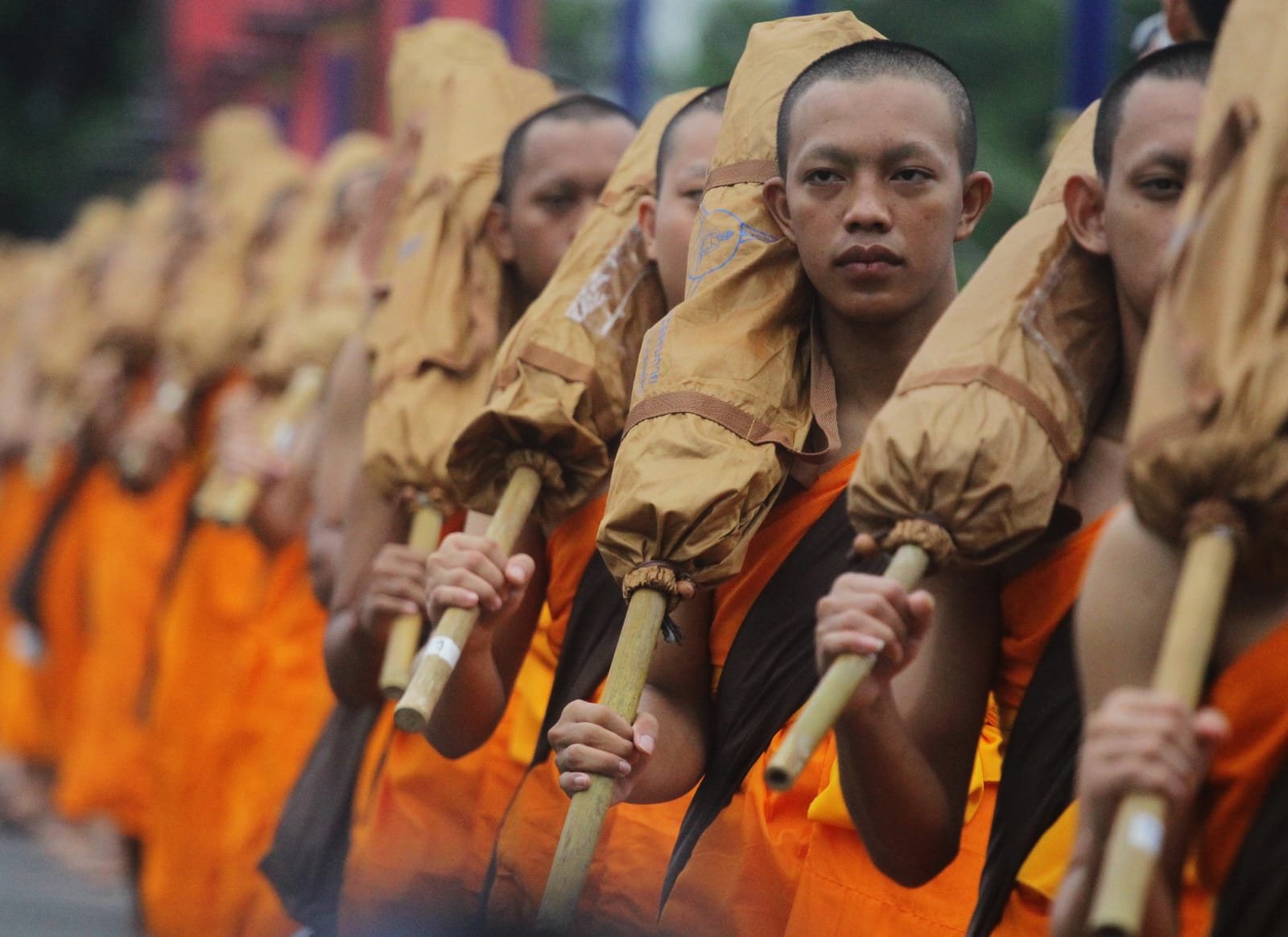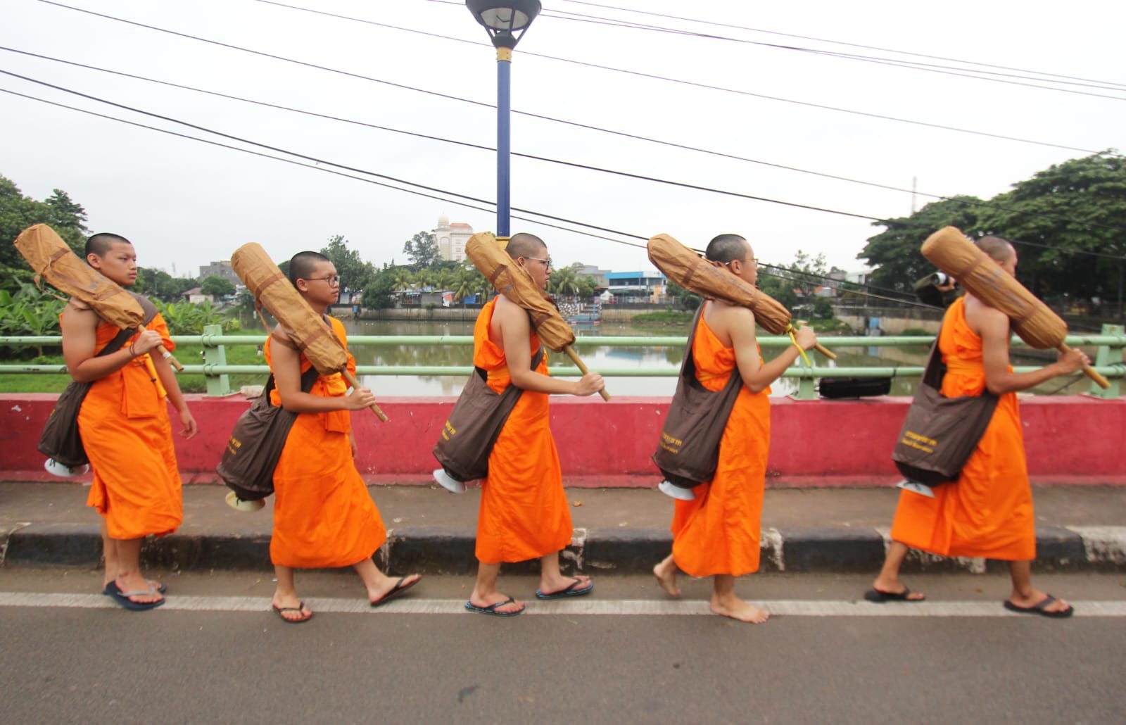 Sejumlah Bikhu melakukan prosesi Thudong atau perjalanan ritual para bhante atau bikhu yang dilakukan dengan berjalan kaki sepanjang ribuan kilometer. Tradisi ini juga dapat dikatakan sebagai perjalanan Spiritual. Makna dari prosesi Thudong itu sendiri lebih kepada melatih kesabaran diri. Tampak terlihat para Bikhu melintas di jembatan Merah menuju Kampung Berkelir Kecamatan Tangerang Kota Tangerang.