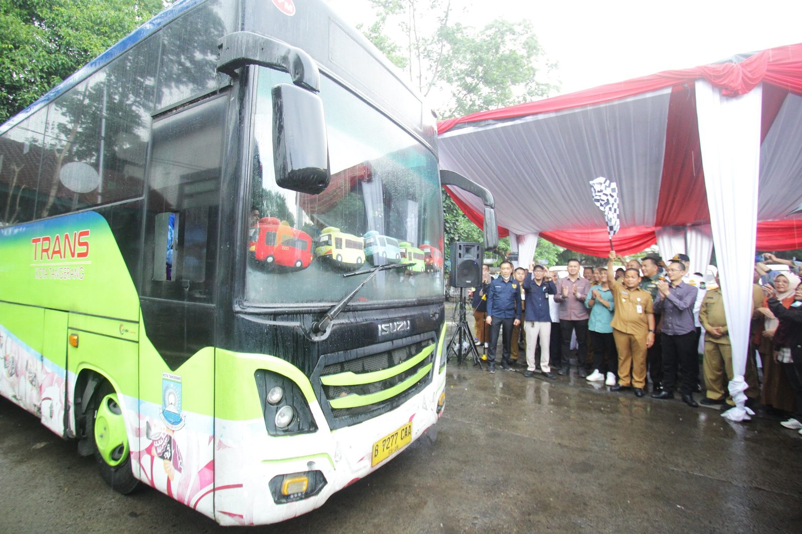 PotretBanten.com, Tangerang – Pemerintah Kota Tangerang Bersama Komisi Pemilihan Umum (KPU) Kota Tangerang melaunching sosialisasi PILKADA Provinsi Banten dan Kota Tangerang pada 27 November 2024 melalui angkutan umum yang dikelola Pemkot Tangerang, Bus Rapid Transit (BRT), Tangerang Ayo (Tayo) dan Angkot Si Benteng di Terminal Poris Plawad Kota Tangerang. Pada sosialisasinya Pemkot Tangerang dan KPU Kota Tangerang memasang stiker ajakan kepada masyarakat untuk ikut mensukseskan PILKADA 2024 di kendaraan yang telah ditentukan. Terlihat PJ Wali Kota Tangerang Nurdin secara simbolis memberangkatkan bus Tayo yang sudah ditempeli stiker PILKADA 2024. Selasa (5/11/2024).PotretBanten.com/Leoni.