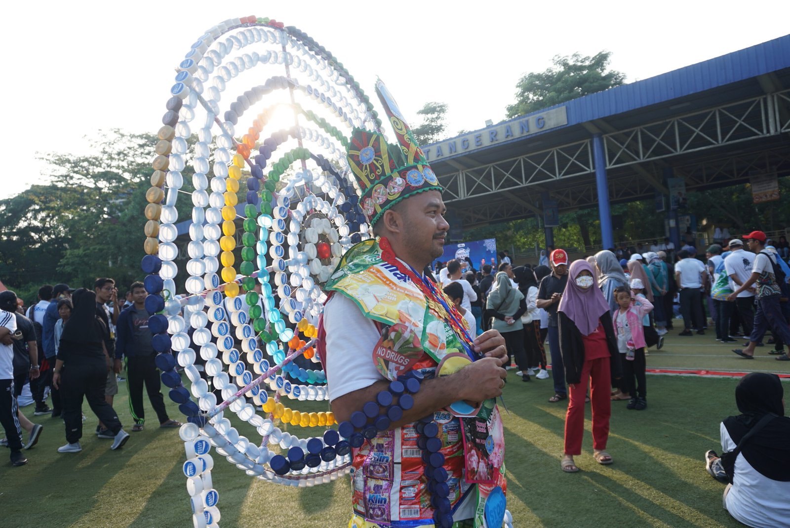 Ribuan warga Kota Tangerang memenuhi Alun alun Ahmad Yani, Minggu 16 Juli 2023. Mereka berkumpul untuk mengikuti acara jalan sehat dan senam bersama dalam rangka hari anti narkotika Internasional (HANI) 2023 yang diadakan Badan Narkotika Nasional Provinsi (BNNP) Banten. Walikota Tangerang Arif R Wismansyah menjelaskan, atas nama Pemkot Tangerang sangat mengapresiasi kegiatan tersebut. UMKM Kota Tangerang dan Lomba busana dari limbah sampah kertas dan plastik pun ikut memeriahkan acara tersebut. Minggu (16/7/2023). Potretbanten/Leoni.