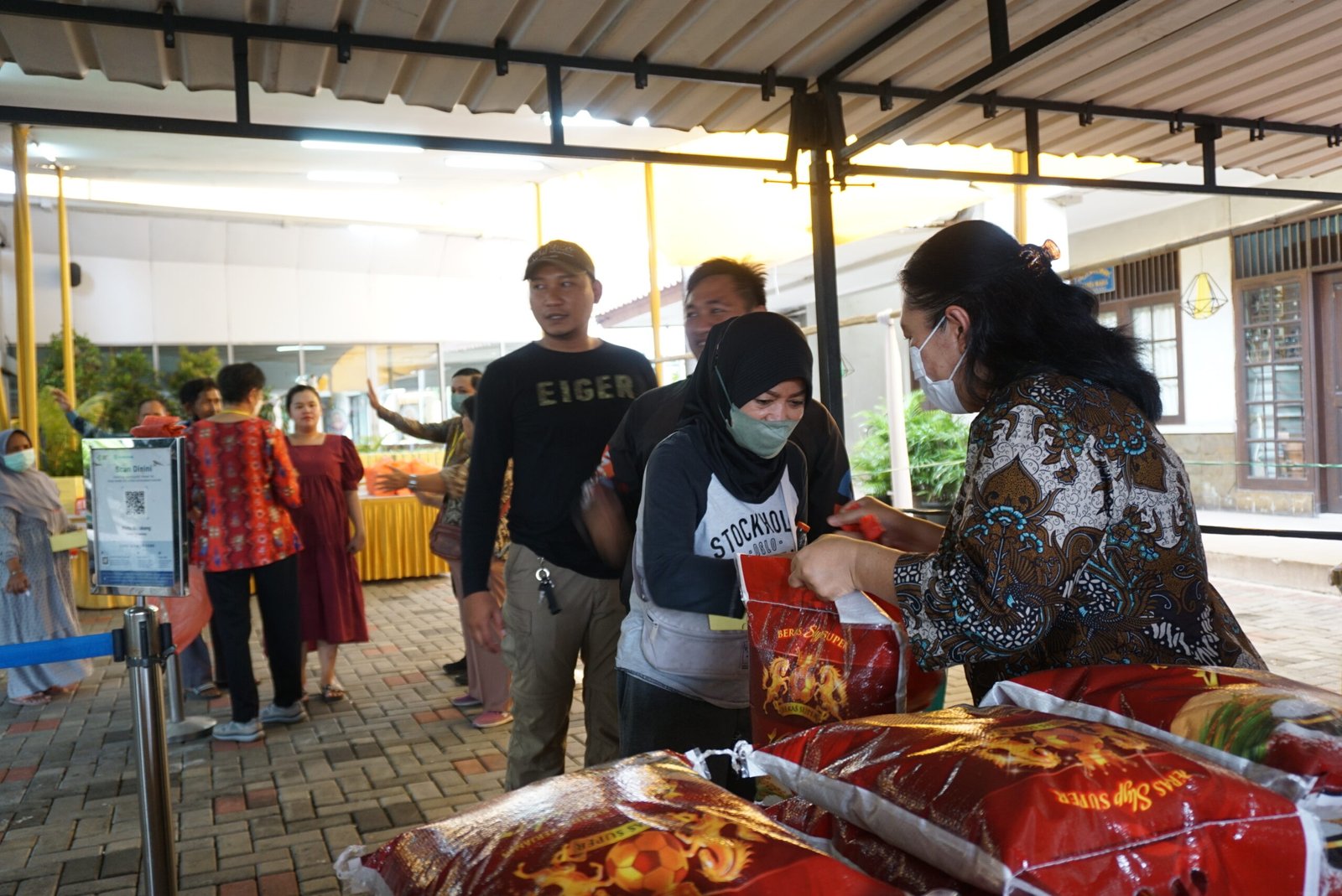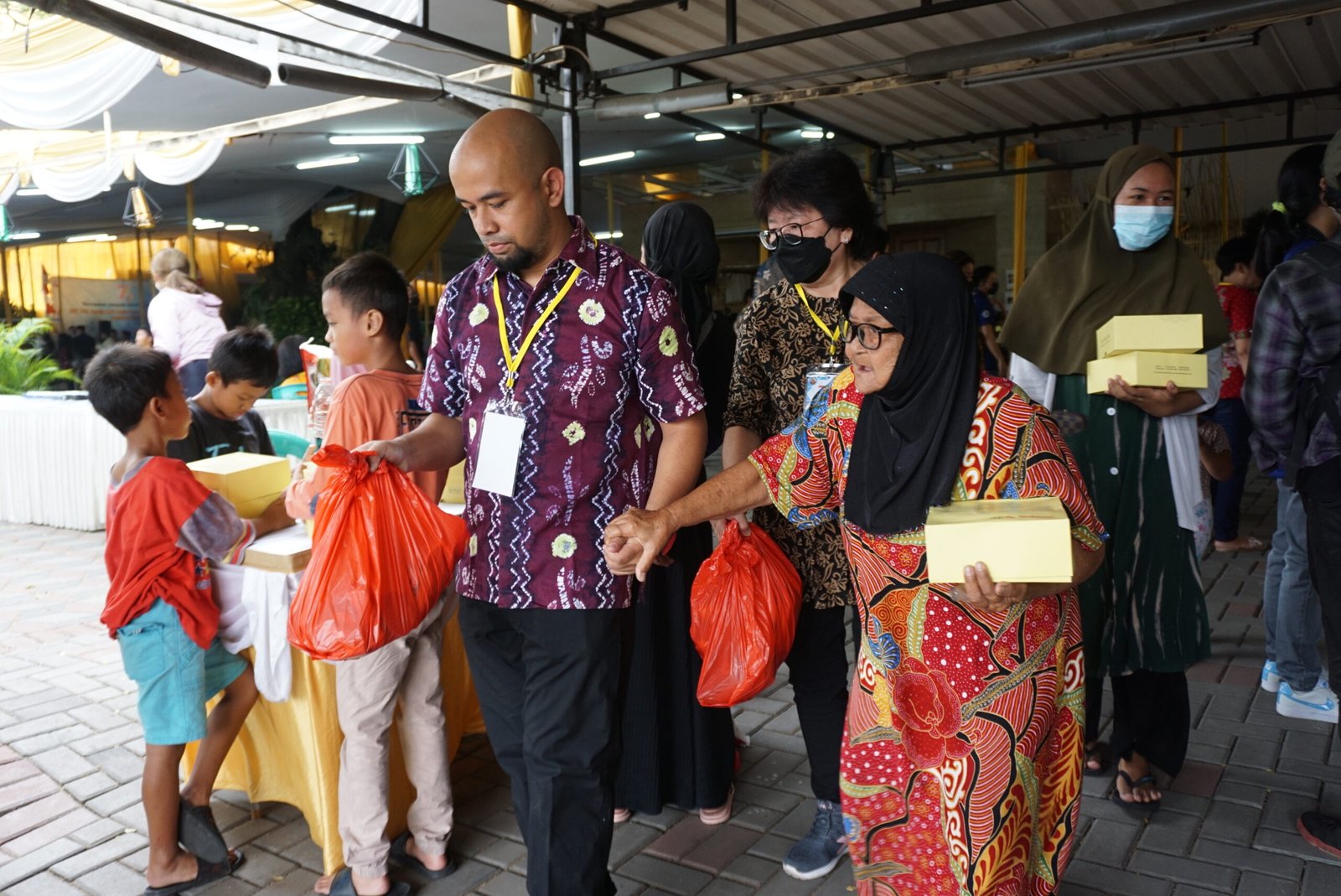 - Panita HUT Gereja HSPMTB sedang membantu seorang nenek penerima sembako