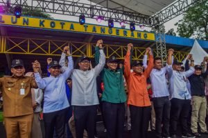 PotretBanten.com, Tangerang – Komisi Pemilihan Umum (KPU) Kota Tangerang, Banten menggelar kampanye damai dalam rangka menyambut kontestasi Pemilihan Kepala Daerah (Pilkada) serentak 2024 yang berlangsung di Alun-alun Ahmad Yani, Kelurahan Sukarasa, Kecamatan Tangerang, Selasa (24/9/2024).