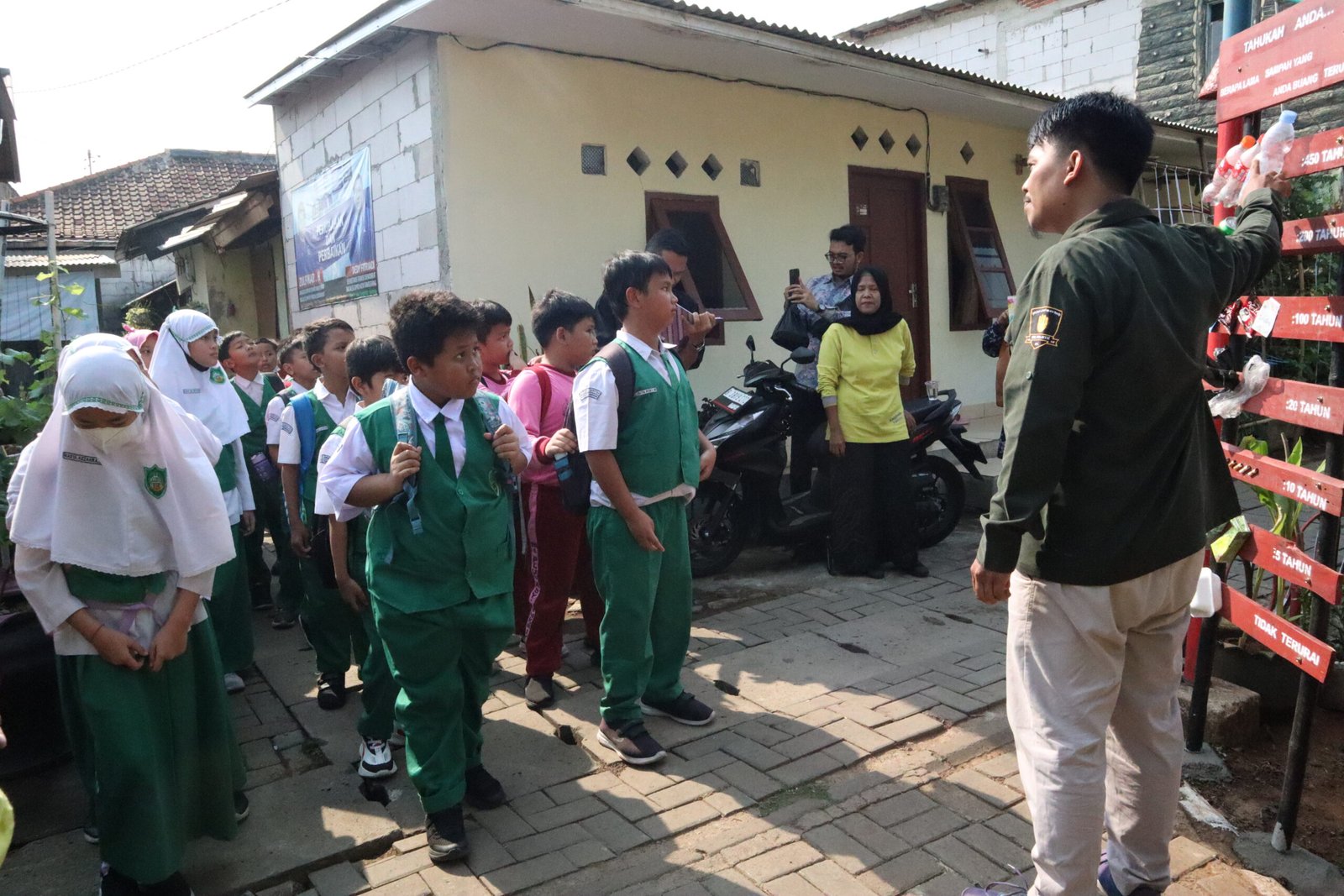 - siswa- siswa sedang mengenal sampah