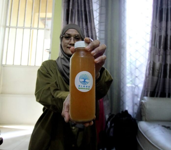 “Karena saya dulu pernah jadi perawat lalu saya berfikir untuk memberikan yang terbaik untuk keluarga saya, akhirnya saya berinisiatif untuk membuat minuman herbal ini,”jelasnya.