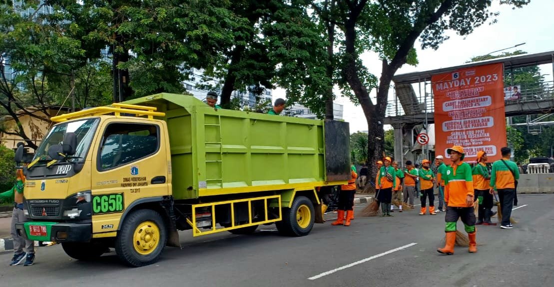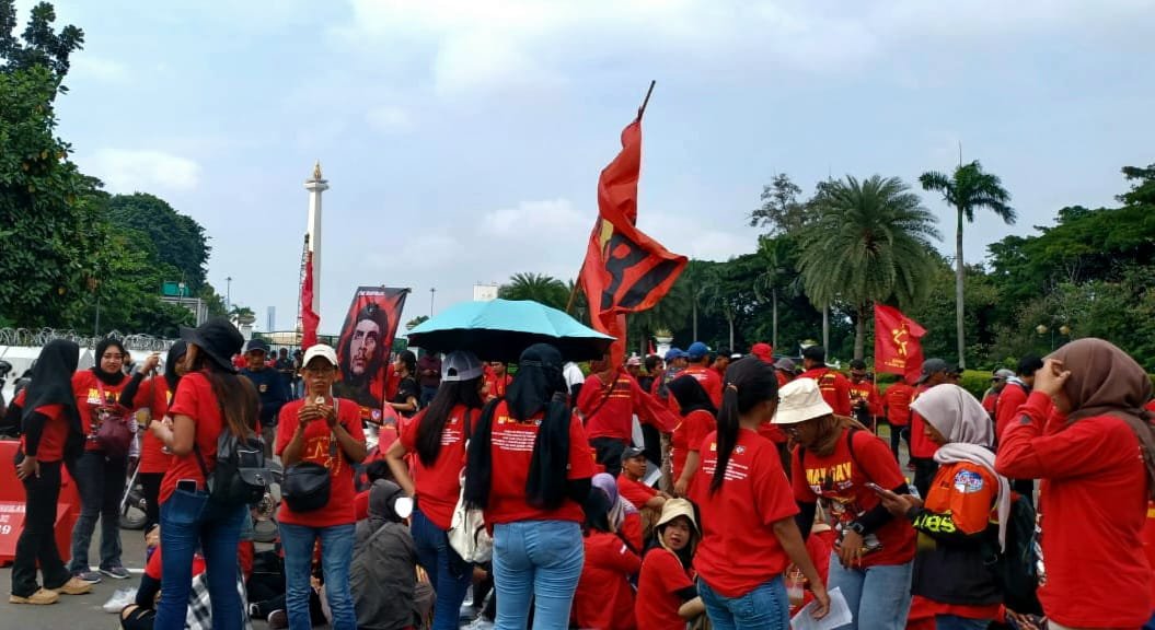 - Suasana Para buruh di Patung Kuda Tugu Monas