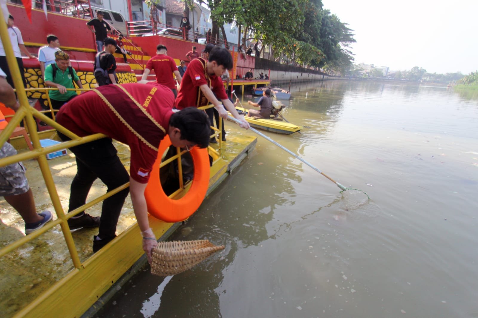 Ratusan pelajar melakukan Oprasi Bersih (Opsih) sungai Cisadane Kota Tangerang, acara yang dilakukan kali ini bertujuan untuk mempersiapkan acara Peh Cun yang akan diselenggarakan pada bulan ini.Dalam acara bersih sungai ini selain diikuti para pelajar juga diikuti oleh Kode-Cide Tangerang yang memang menjadi icon cina benteng di Tangerang. Terlihat Sejumlah pelajar dan cide-kode sedang mengambil sampah di tengah sungai Cisadane dengan menaiki perahu wisata. Minggu (11/6/23).baksampah.me/Leoni.