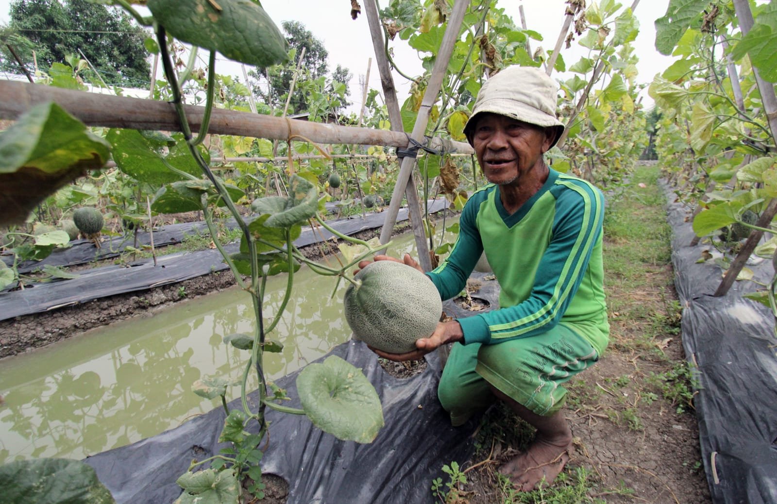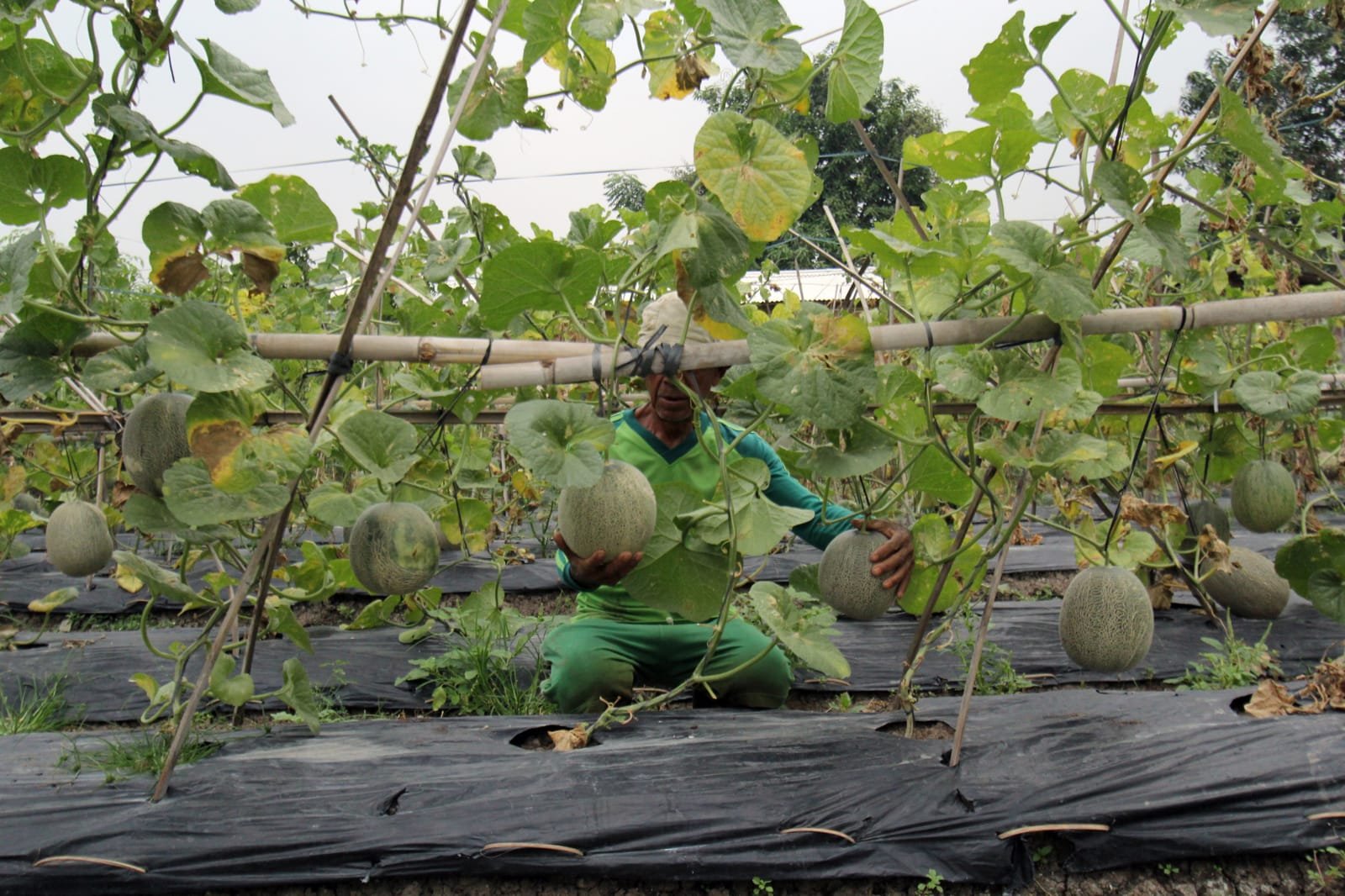 - Mustari bersiap untuk memanen buah melon yang ia tanam