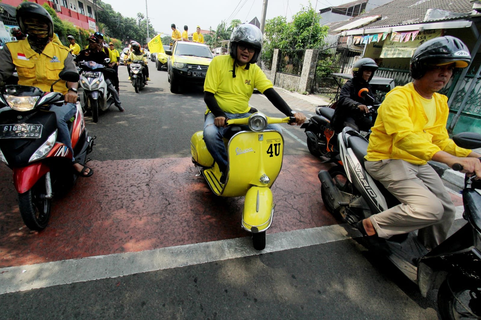 - Simpatisan Partai GOLKAR konvoi motor menuju kantor KPU Kota Tangerang