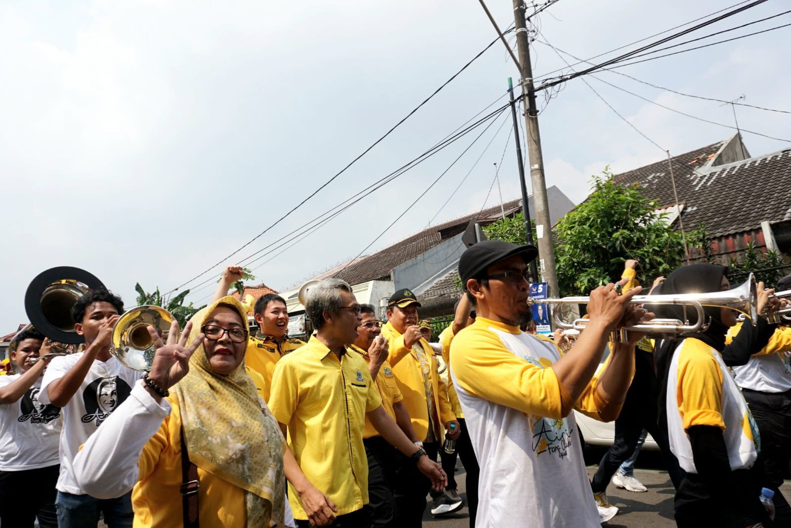 - Ketua Dewan Pimpinan Daerah Partai Golkar Kota Tangerang Sachrudin langsung mengantarkan kontestan menuju Kantor KPU dengan berjalan kaki dari Stadion Benteng Reborn
