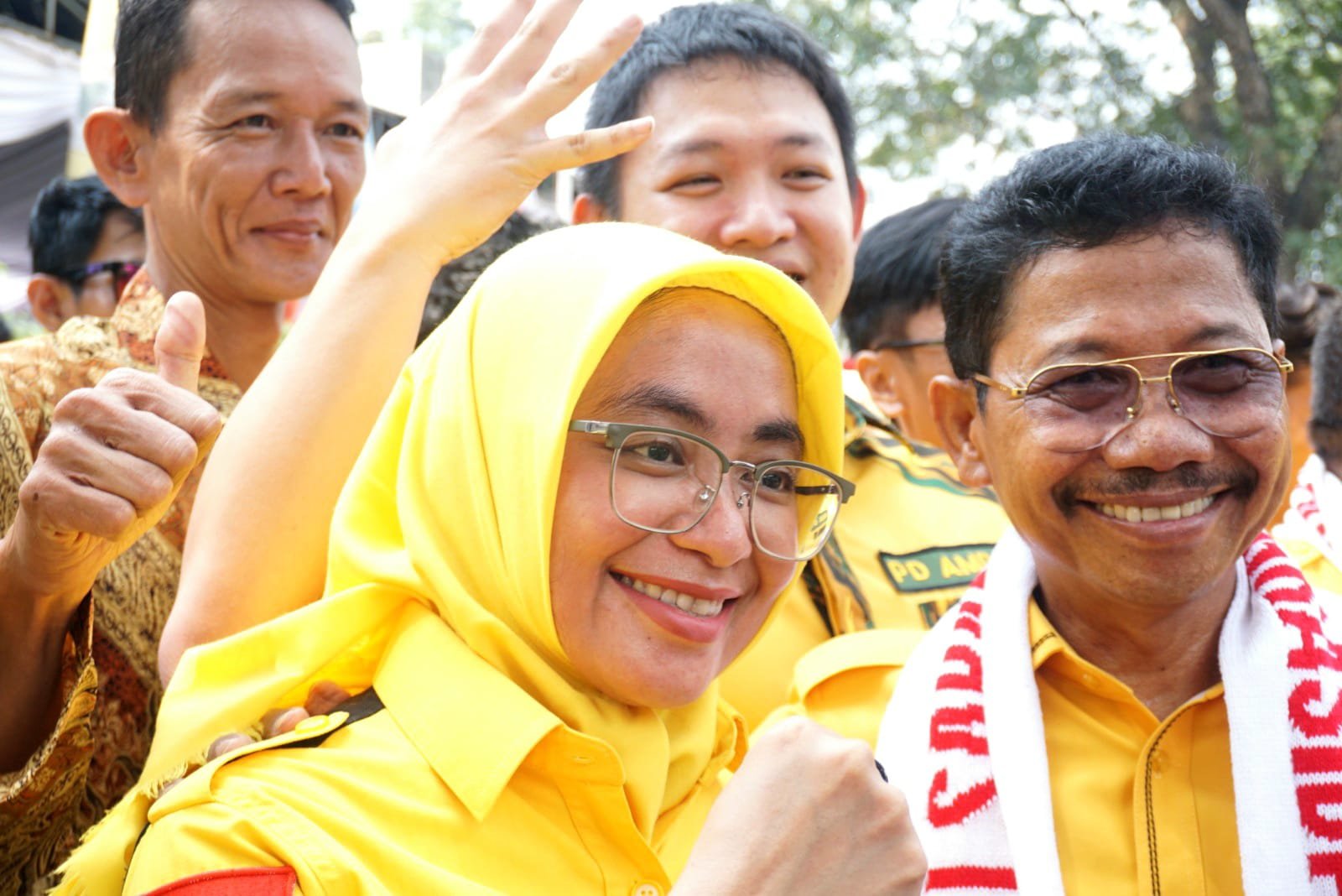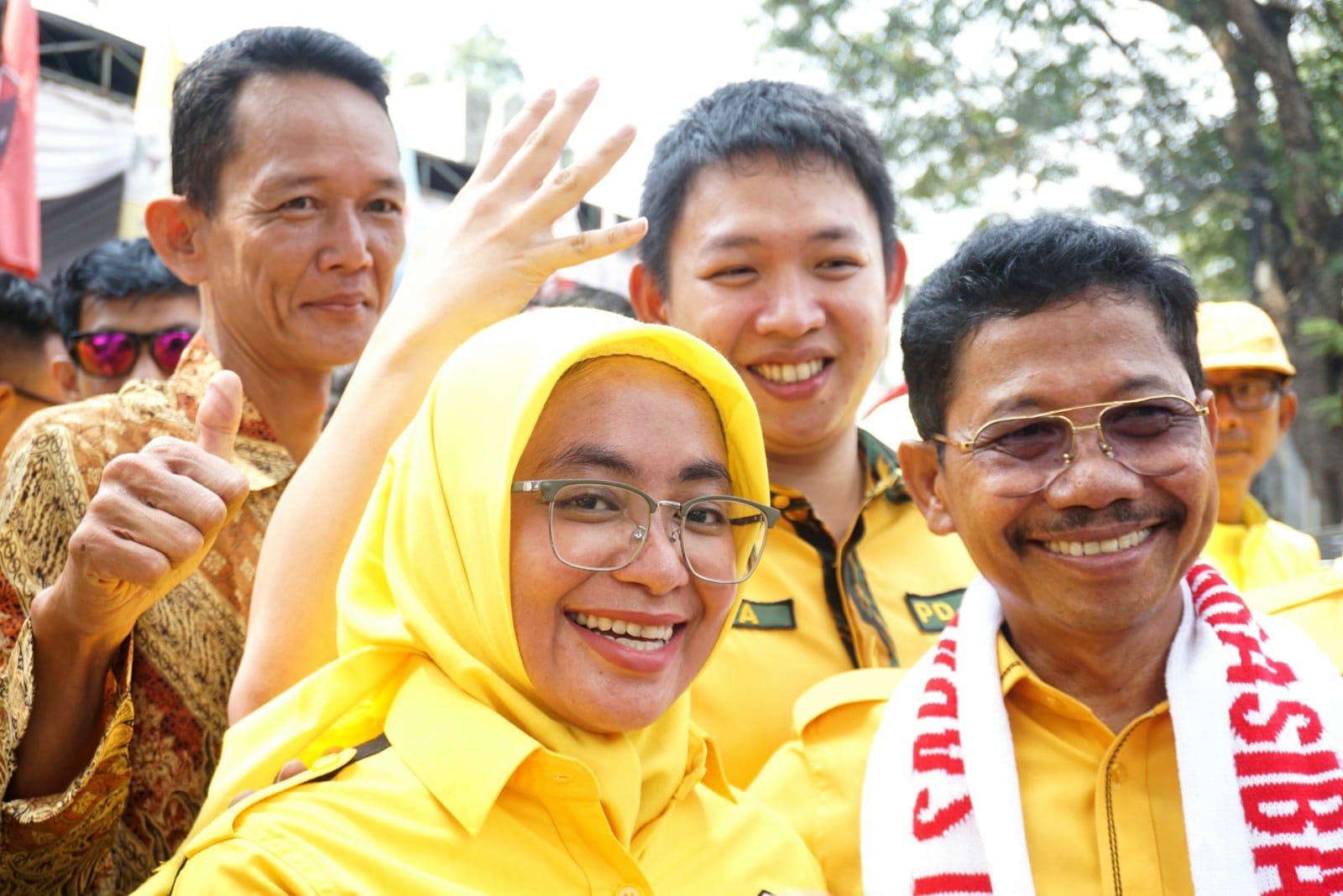 - Ketua Dewan Pimpinan Daerah Partai Golkar Kota Tangerang Sachrudin beserta para kader,bacaleg,dan simpatisan di depan halaman KPU Kota Tangerang