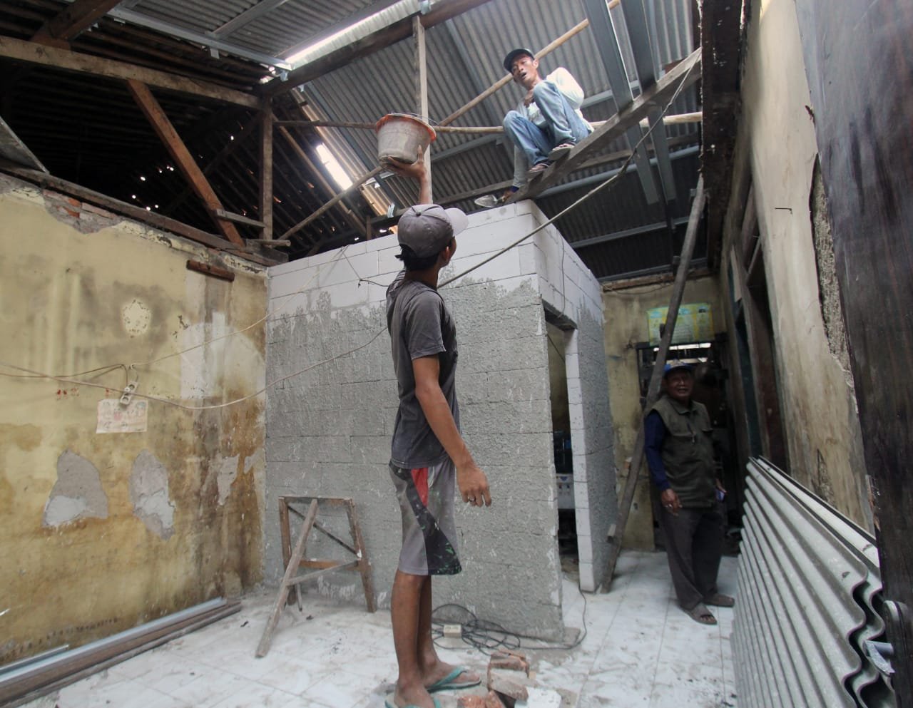 Pemerintah Kota (Pemkot) Tangerang Banten menargetkan 700 unit rumah dibedah pada 2023 melalui Program Bedah Rumah bagi warga Kota Tangerang yang tidak mampu dan dalam kondisi tidak layak huni.Wali kota mengungkapkan sejak 2014 hingga 2022 Pemkot Tangerang melalui Program Bedah Rumah telah merenovasi sekitar 7.483 unit Rumah Tidak Layak Huni (Rutilahu) milik warga Kota Tangerang. Program Bedah Rumah di Kelurahan Periuk Jaya ,Kecamatan Periuk ,Kota Tangerang yang sudah mencapai 80% dari 6 rumah yang mendapat program Bedah Rumah. Tampak terlihat pekerja sedang menyelesaikan pekerjaannya. Selasa (10/10/23).potretbanten/Leoni.