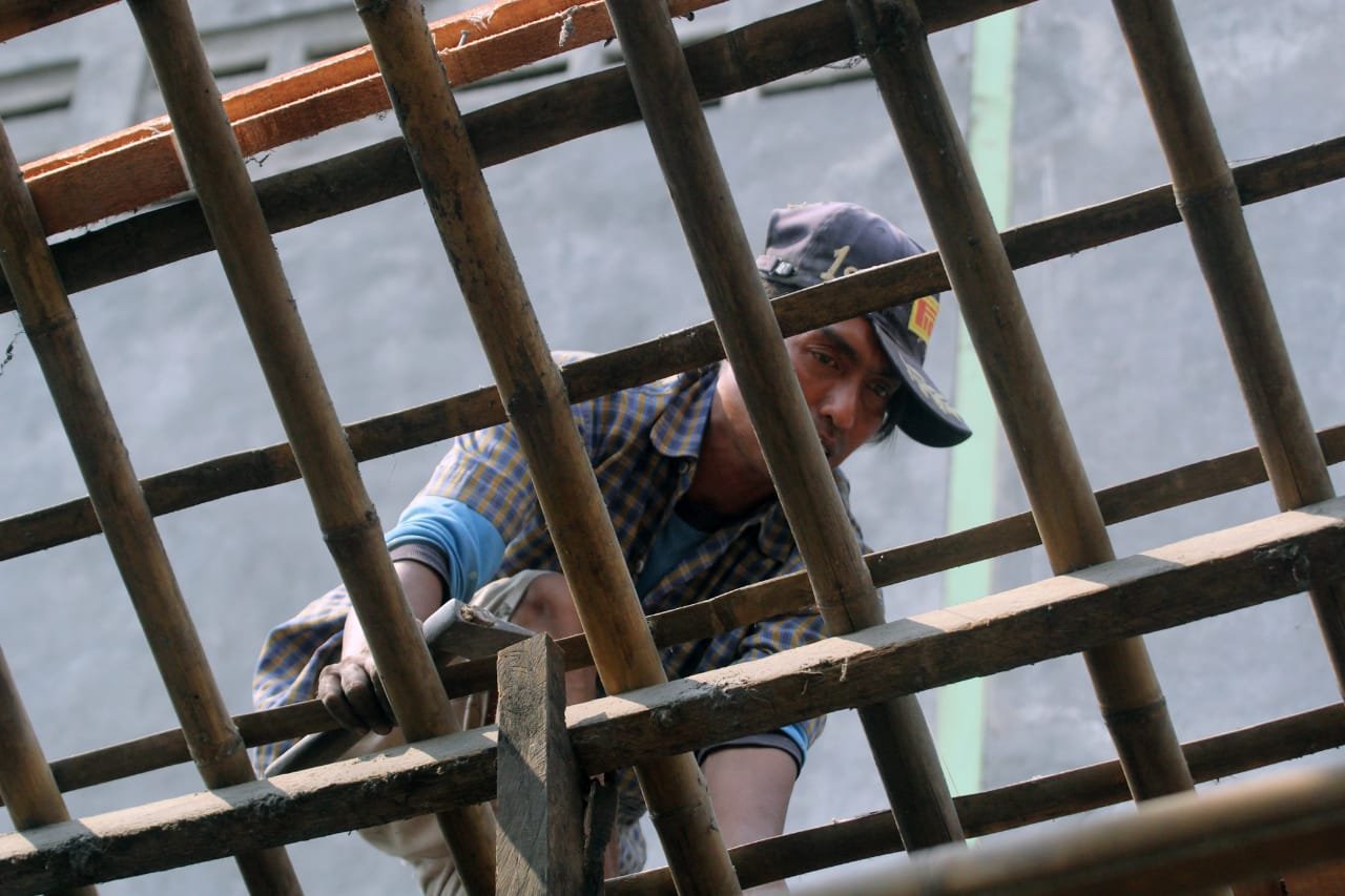 - Tampak terlihat pekerja sedang menyelesaikan pekerjaannya.