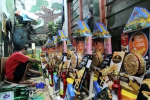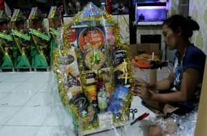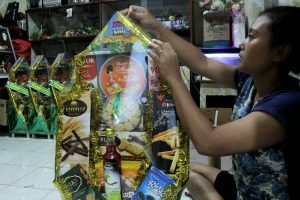 Tradisi mengirimkan parcel sudah menjadi budaya setiap tahun di Indonesia, teruma di momen besar seperti Lebaran. Disaat pandemi Covid-19 melanda tradisi megirim parcel tetap berjalan walaupun ada keterbatasan bertemu dengan sanak saudara maupun kolega. Jelang Lebaran tradisi mengirim parcel makin intens, parcel yang dominan diisi dengan kue-kue khas Lebaran. Seperti yang dilakukan pedagang parcel di wilayah Cikini Kecamatan Menteng Jakarta Pusat dimana lopkasi tersebut pernah menjadi pasar parcel terbesar se Asia. Tampak terlihat penjual patcel sedang menyelesaikan pekerjaannya. Kamis (6/4/2023).PotretBanten.com/Leoni.