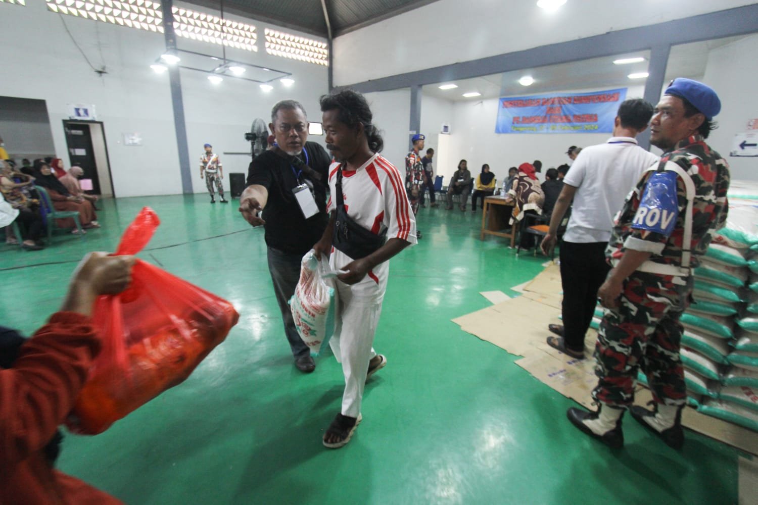 Salah seorang penerima bantuan, Ajong, adalah korban gas amonia di wilayah Koang Jaya beberapa waktu lalu menjelaskan bahwa ini adalah bentuk pertanggung jawaban perusahaan.
