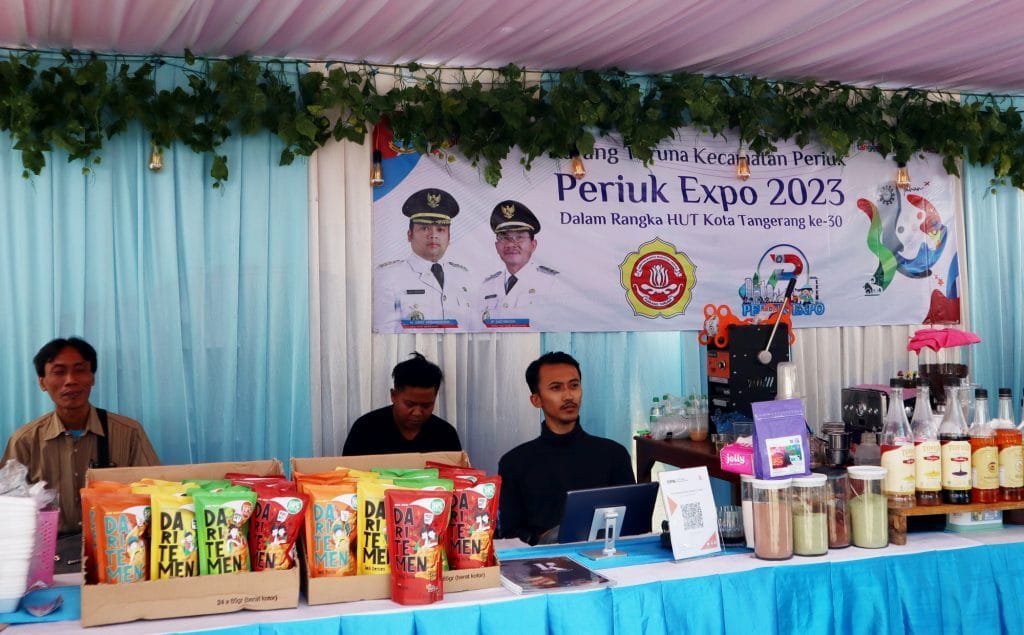 Kemeriahan HUT Kota Tangerang ke 30 sudah sangat terasa diberbagai wilayah di Kota Tangerang. Seperti di Kecamatan Periuk, yang menggelar Periuk Expo 2023, di Villa Grand Tomang, RW 17, Kelurahan Periuk. Sabtu (18/2/2023). Dalam kesempatan tersebut tampak komedian Aziz Gagap turut memeriahkan Periuk Expo 2023. Diacara Periuk Expo juga mengahdirkan pelayanan bagi masyarakat dalm pembuatan KTP, Akta, dan lainnya yang berhubungan dengan administrasi negara, juga tak lepas para pelaku UMKM yang berpartisipasi diacara tersebut, seperti minuman kesehatan rempah-rempah yang terbuat dari bahan dasar jahe, dan UMKM Karang Taruna Kecamatan Periuk. Sabtu (18/2/2023). Potret Banten.Leoni