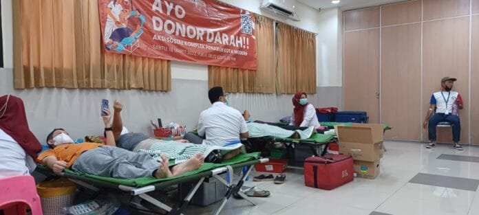Kegiatan Donor darah berlangsung di Sekolah Penabur Jl.Honoris Raya Blok J 10 Kota Modern,RT.004/RW.005,Kelapa Indah, Kecamatan Tangerang,Banten, Jumat 18 Maret 2023.