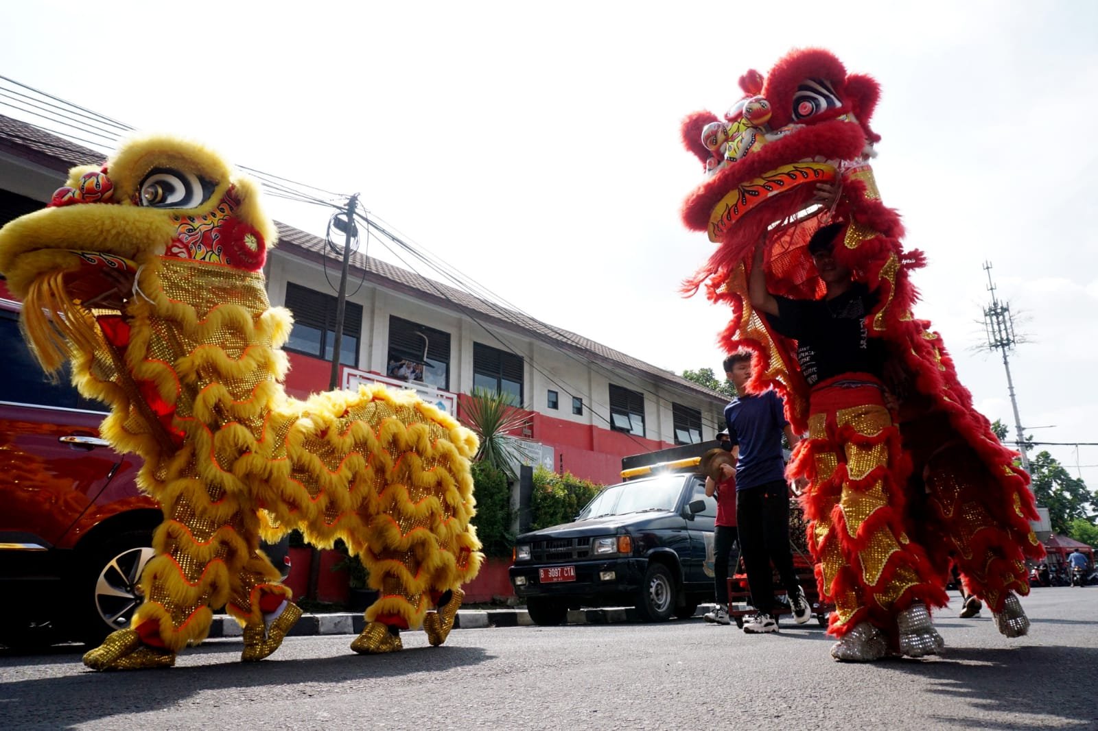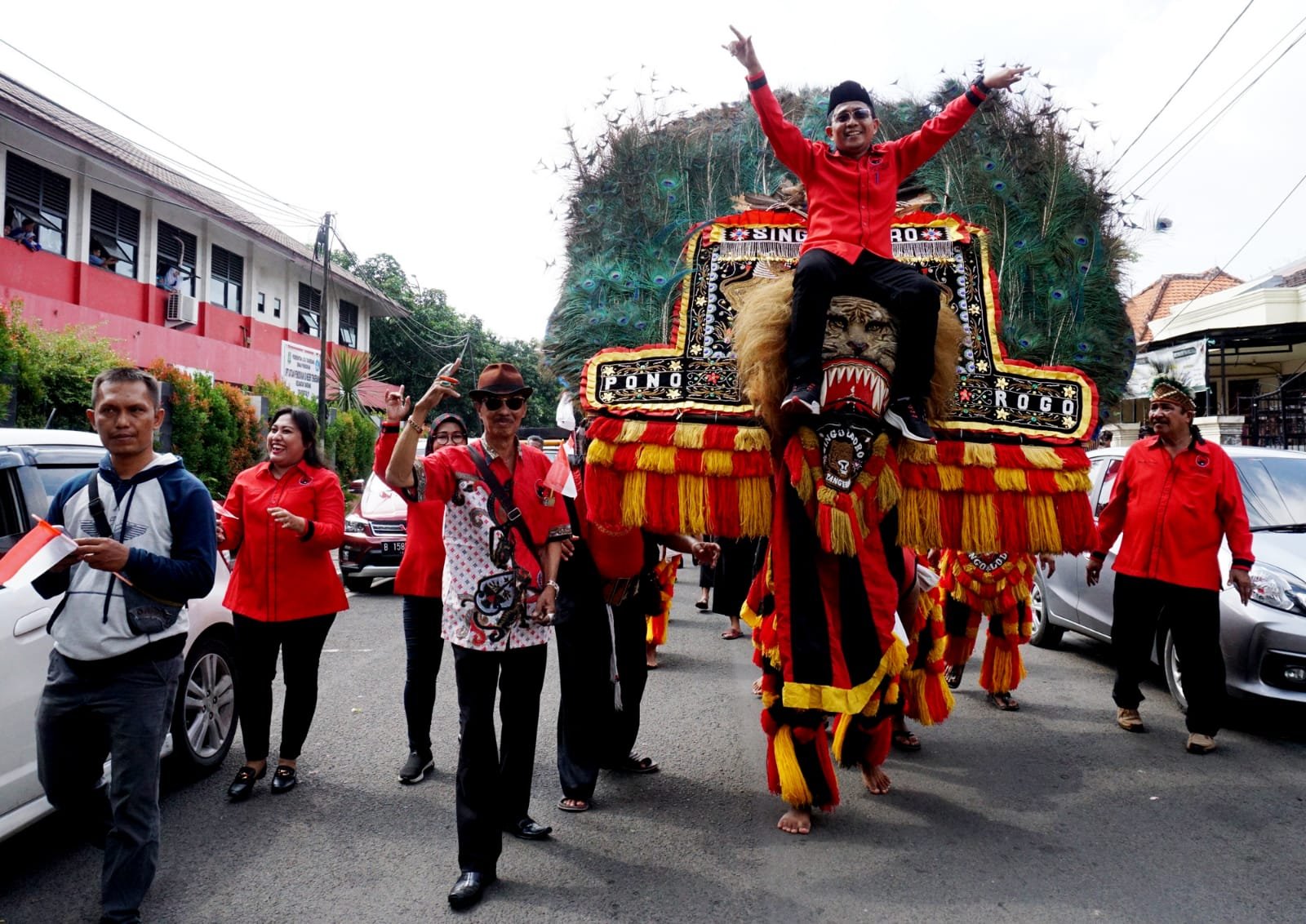 - Reog menopang ketua DPC PDIP Kota Tangerang diatas kepala singa