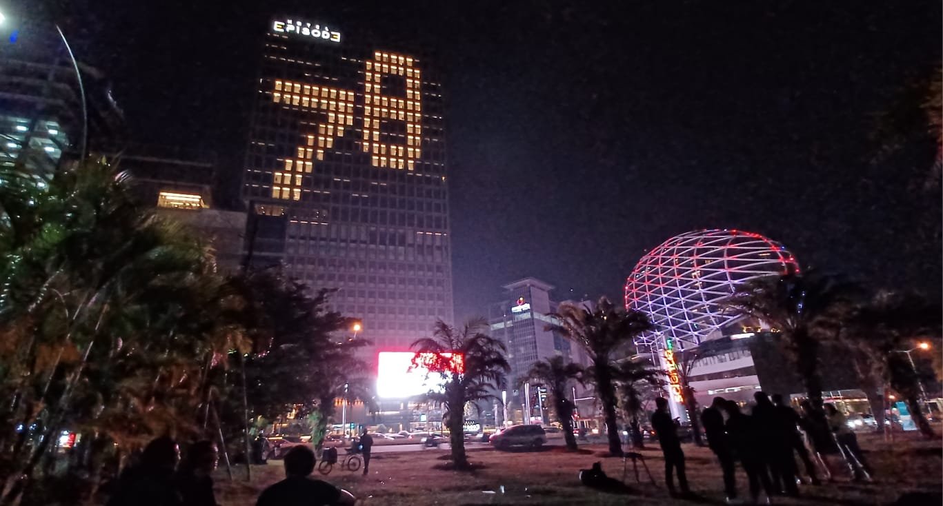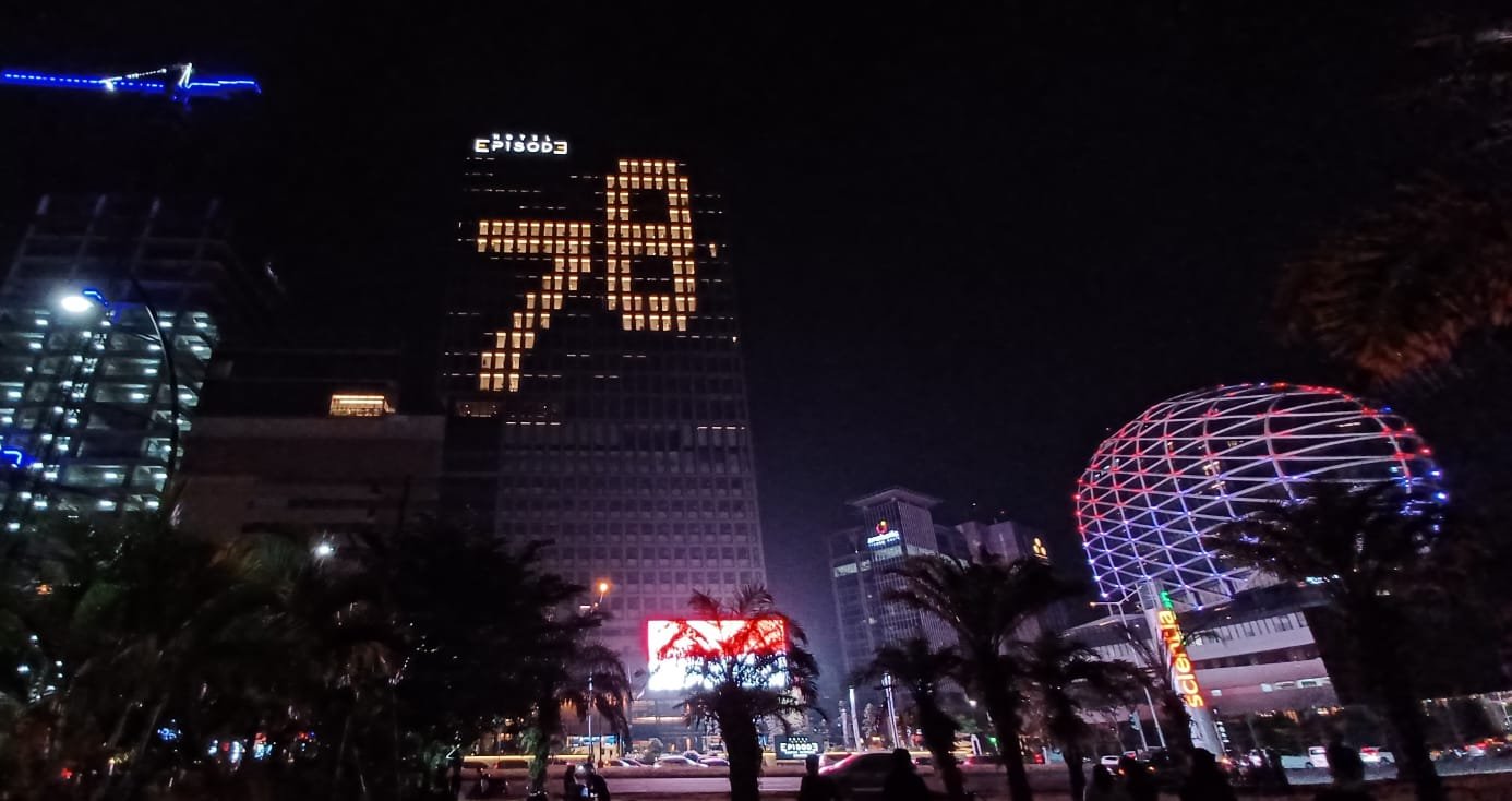 Dalam rangka menyambut Hari Ulang Tahun Republik Indonesia yang ke-78, JHL Collections membuat rangkaian lampu membentuk angka 78 yang menyala terang di facade gedung hotel Episode, Gading Serpong, Kabupaten Tangerang, Banten, Rabu (16/8/2023). Tidak berada jauh dari hotel Episode, sinar lampu berwarna merah putih juga mewarnai facade hotel JHL Solitaire. Kedua hotel ini menjadi pusat perhatian warga yang sedang melintas di area Gading Serpong Boulevard dan sekitarnya, karena tidak sedikit orang yang mengabadikan pemandangan istimewa ini saat malam hari. Bagi JHL Collections momen Kemerdekaan Republik Indonesia merupakan momen yang penting untuk diperingati setiap tahunnya. Rabu (16/8/2023). baksampah.me/Leoni.