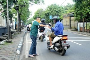 Pengurus Vihara Boen San Bio membagikan takjil gratis kepada pengendara yang melintas di Jl. KS Tubun No. 43 RT. 01 RW. 03, Koang Jaya, RT.004/RW.004, Ps. Baru, Kec. Tangerang, Kota Tangerang. Vihara Boen San Bio menyediakan seribu takjil buka puasa Ramadhan 1444 H bagi umat muslim di sekitar vihara. Terlihat Ketua Perkumpulan Klenteng Boen San Bio dan anggota sedang membagikan Takjil di tepi jalan. Senin(3/4/23). PotretBanten.com/Leoni.