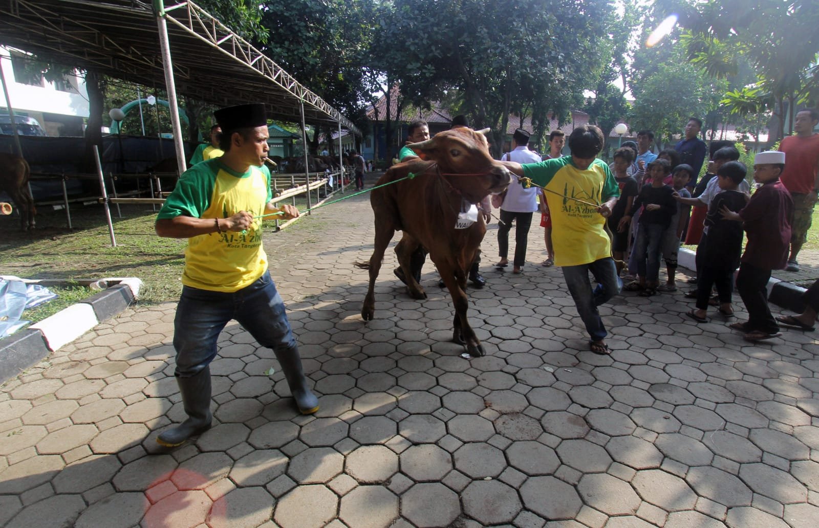 - Wakil Walikota Tangerang Sachrudin menyaksikan prosesi pemotongan hewan kurban di halaman belakang masjid Raya Al Azhom.