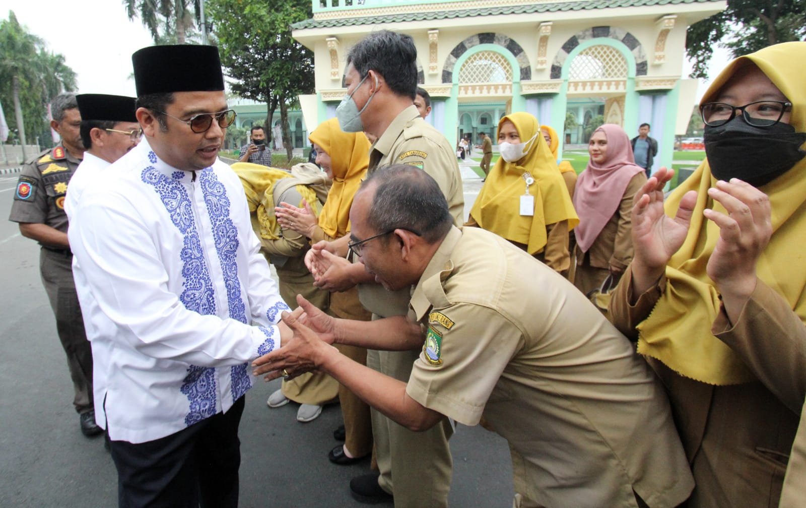 - Wali Kota dan Wakil sedang bersalaman kepada pegawai